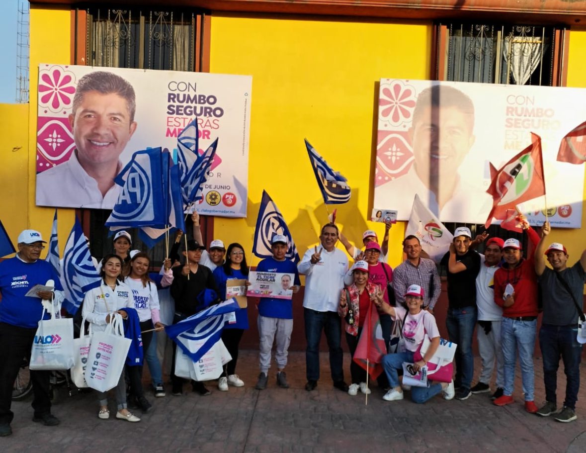 El candidato a diputado federal por el Distrito 10, Humberto Aguilar Coronado “El Tigre”, recorrió las calles de Santiago Momoxpan, junta auxiliar de San Pedro Cholula, para convivir y escuchar las peticiones de vecinas y vecinos del lugar.