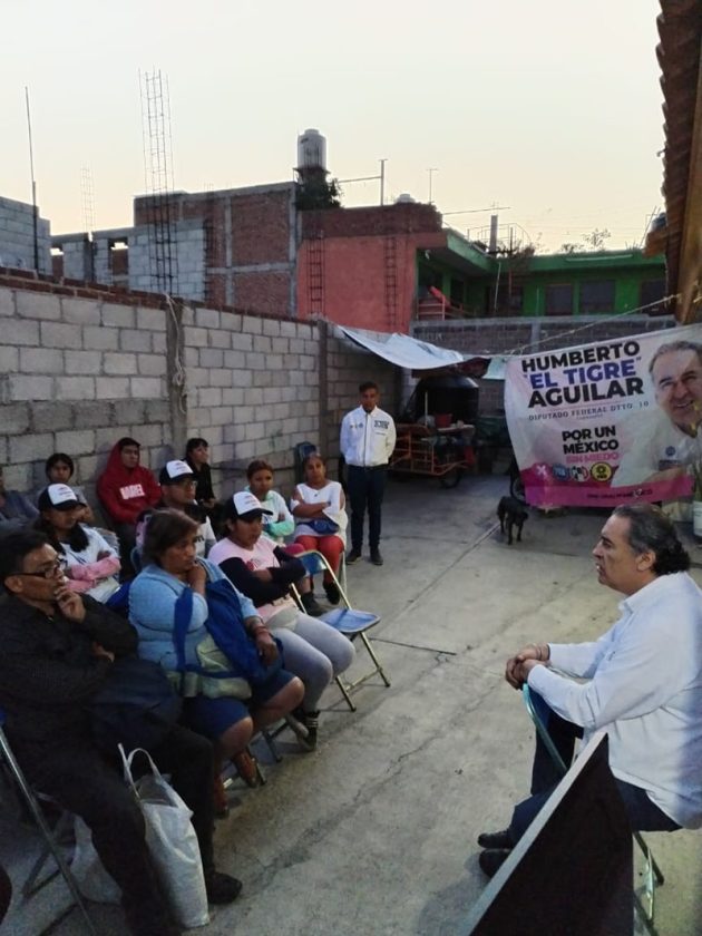 El candidato a diputado federal por el Distrito 10, Humberto Aguilar Coronado “El Tigre”, se reunió con vecinos del Barrio de Jesús en San Pedro Cholula, con quienes convivió y atendió sus dudas respecto a la labor de un legislador en el Congreso de la Unión.