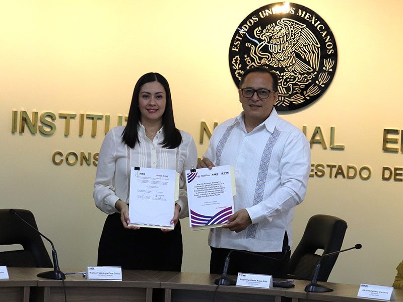 Con la firma de un plan de acciones de apoyo y colaboración entre la delegación del Instituto Nacional Electoral (INE) en el estado de Puebla que encabeza el consejero presidente, Edgar Humberto Arias Alba, y el Instituto Electoral del Estado (IEE) que dirige la consejera presidenta, Blanca Yassahara Cruz García, se promoverá la participación activa de la ciudadanía y se fomentará el voto informado y el interés sobre la trascendencia de la elección de diversos cargos del Poder Judicial de la Federación.