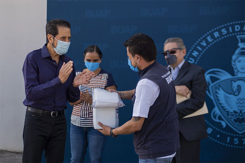 El Rector Alfonso Esparza Ortiz dio el banderazo de salida de la campaña “BUAP, apoyando el bienestar social”, mediante la cual se apoyará a habitantes de diversas comunidades del estado, afectados económicamente por la epidemia del coronavirus. En este acto, expresó: “Como representante de nuestra Máxima Casa de Estudios del estado reafirmo el compromiso de coadyuvar y poner el conocimiento al servicio de la sociedad, así como permanecer atento a las mejores causas para Puebla y sus habitantes”.