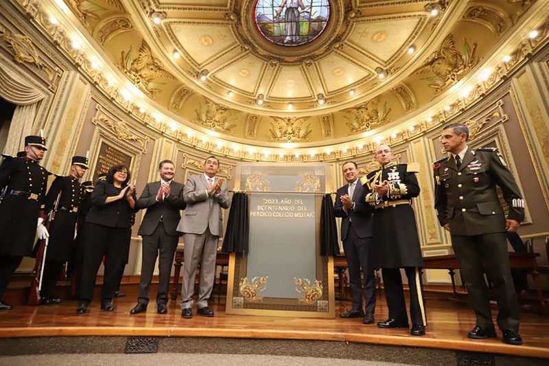 La LXI Legislatura del Congreso del Estado de Puebla inscribió con letras doradas en el Muro de Honor del Salón del Pleno la leyenda: “2023, Año del Bicentenario del Heroico Colegio Militar”, como reconocimiento a su trayectoria, lealtad y compromiso con el país y sus habitantes.
