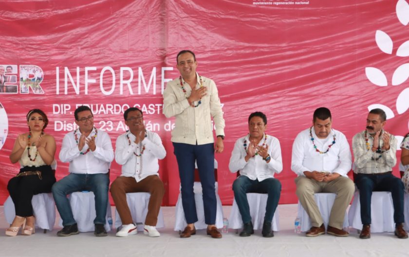 «A mis amigas y amigos Presidentes Municipales en funciones y electos, los invito a que cerremos filas contra la corrupción, sigamos trabajando por un mejor futuro para nuestra mixteca», fue el llamado dirigido a autoridades municipales, hecho por Eduardo Castillo López, al rendir su Tercer Informe de Actividades Legislativas como diputado del Distrito 23 de Acatlán de Osorio.