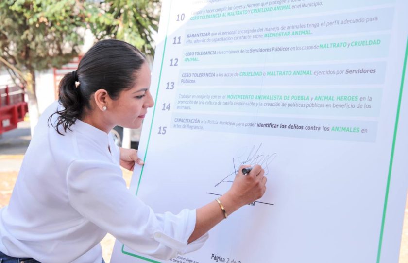 Lupita Cuautle candidata a la Presidencia Municipal de San Andrés Cholula por el PAN en candidatura común con PRI, PRD y PSI, firmó la carta de compromiso de la Agenda Animalista como parte del programa de protección animal propuesta por Animal Héroes y el Movimiento Animalista de Puebla.