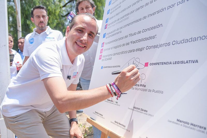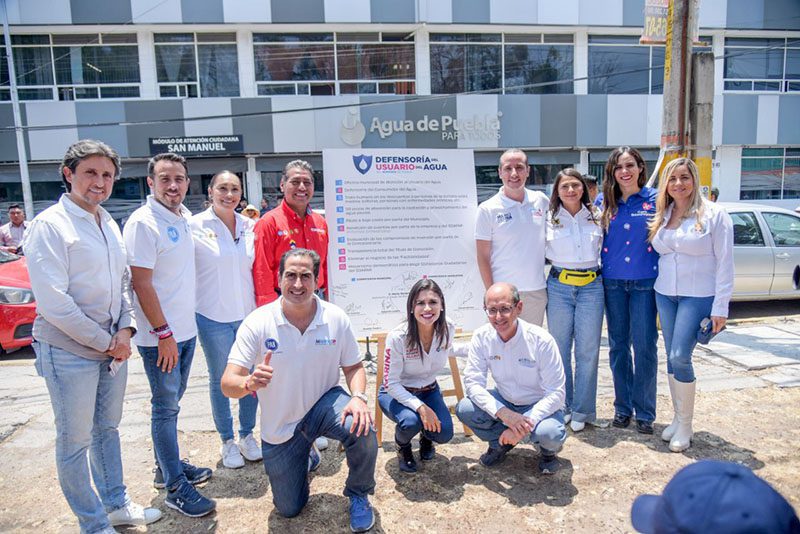 Mario Riestra, candidato por el PAN, PRI, PRD y PSI a la Presidencia Municipal de Puebla, junto a aspirantes a diputados locales y federales, presentó su compromiso con la creación de la Defensoría del Usuario del Agua como parte integral de su plan como alcalde.