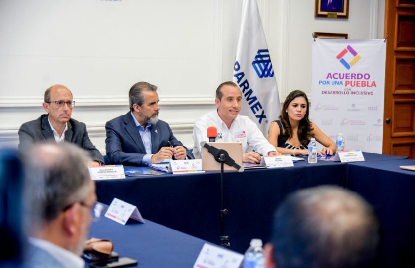 El candidato a la Presidencia Municipal de Puebla en unidad PAN, PRI, PRD y PSI, Mario Riestra, firmó con la Confederación Patronal de la República Mexicana (Coparmex) en Puebla, en favor del desarrollo inclusivo y el crecimiento equitativo al suscribir el «Acuerdo por una Puebla con Desarrollo Inclusivo».