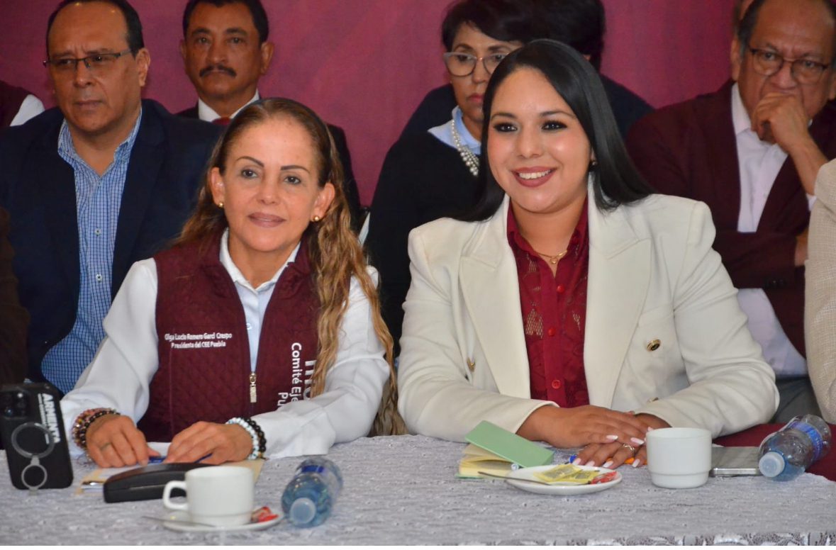 Olga Lucia Romero Garci-Crespo, Presidenta Estatal de Morena, acompañada de diputados electos y en funciones, respaldan el triunfo de Tonantzin Fernández en San Pedro Cholula, para hacer respetar la voluntad del pueblo.