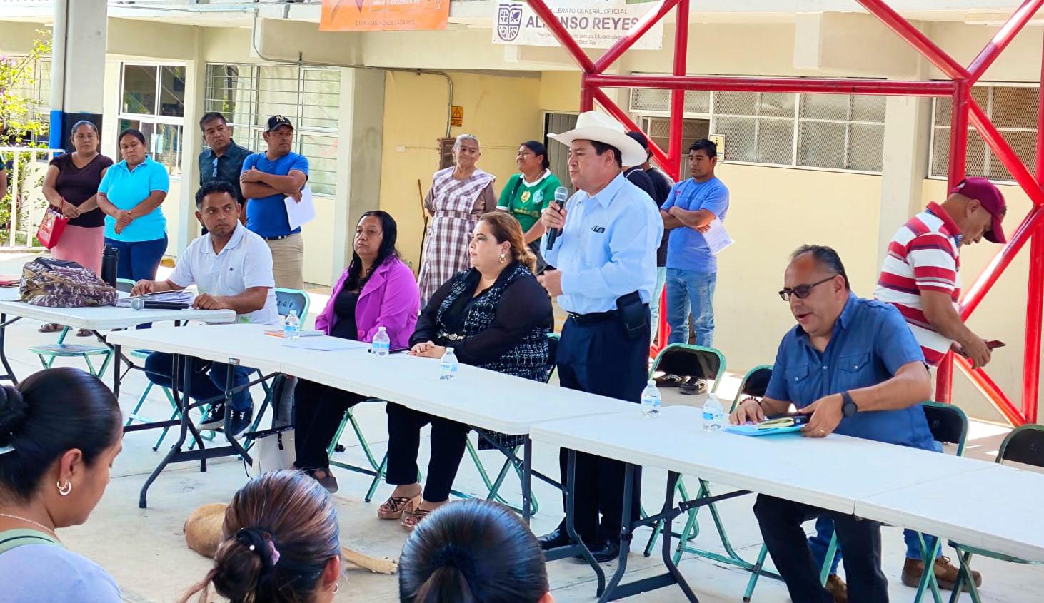 El diputado Rosalío Zanatta Vidaurri participó en la Asamblea de Obra Comunitaria realizada en el Bachillerato General “Alfonso Reyes”, en el municipio de San Gabriel Chilac, donde las y los asistentes dialogaron sobre la creación de un comedor digno para las y los estudiantes.
