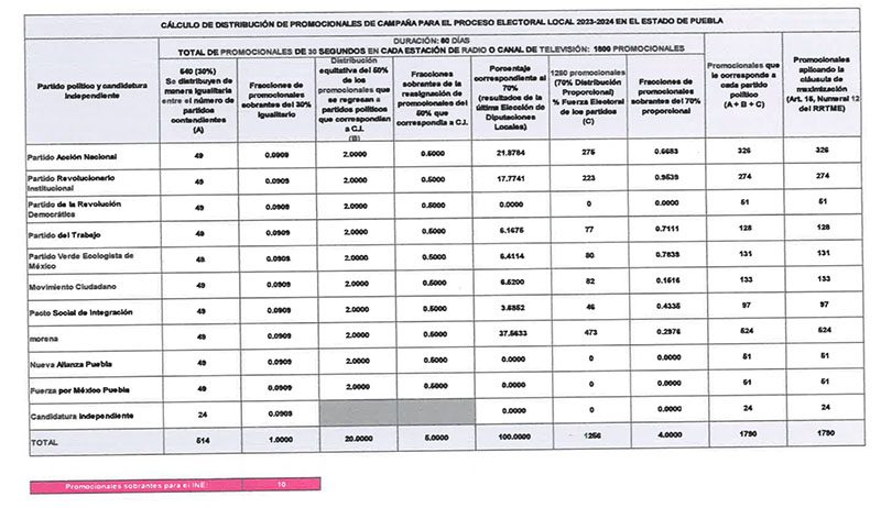 Para el proceso electoral de Puebla habrá 1,800 spots en cada televisora y estación de radio en los 60 días de campaña, es decir, 30 spots diarios.