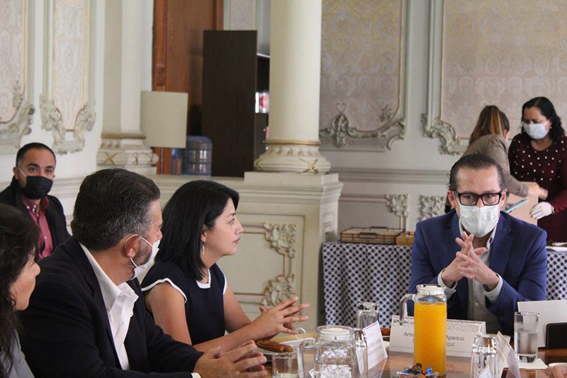 Los titulares de la Tesorería Municipal, Armando Morales Aparicio, y la Secretaría de Desarrollo Económico Municipal, Carmen Mireya Calderón González, sostuvieron una reunión con representantes de las principales cámaras empresariales con presencia en la capital para socializar entre la iniciativa privada el paquete de estímulos fiscales que brinda el Ayuntamiento de Puebla, encabezado por Claudia Rivera Vivanco, y fomentar la reactivación económica tras la emergencia sanitaria por Covid-19,