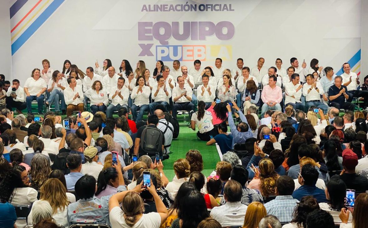 Después de registrar su candidatura por la alcaldía de Puebla ante el Instituto Electoral del Estado (IEE), el panista Mario Riestra Piña presentó la planilla de regidores, como la «Alineación Oficial Equipo X Puebla».