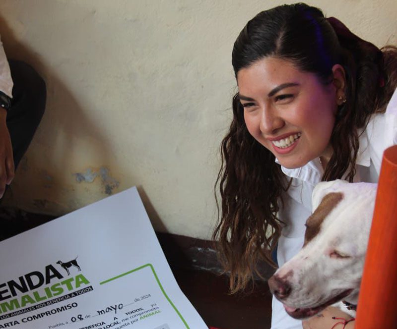 La candidata a diputada local por el distrito 11 por Morena, Xel Arianna Hernández García, presenta su Agenda Animalista, acompañada de integrantes del Movimiento Animalista de Puebla.