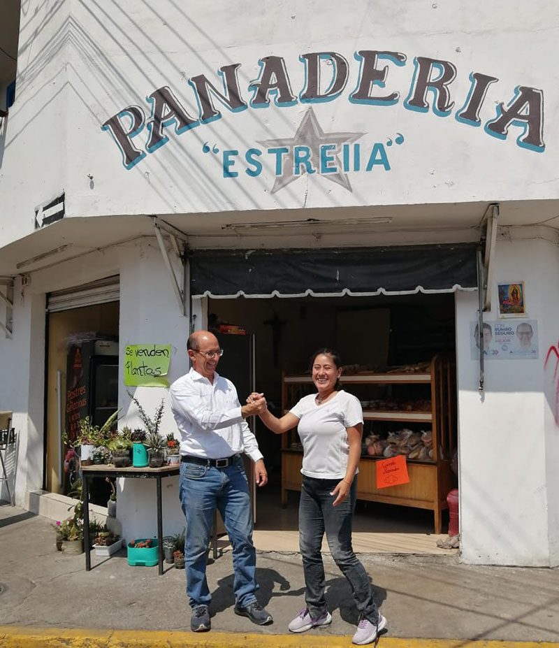 Durante su recorrido por la colonia, Ale Cañedo tuvo la oportunidad de visitar la panadería de Estrella, una poblana emprendedora, dedicada, trabajadora y que ha logrado expandir su sueño con esfuerzo y el apoyo recibido a través de Créditos Contigo.