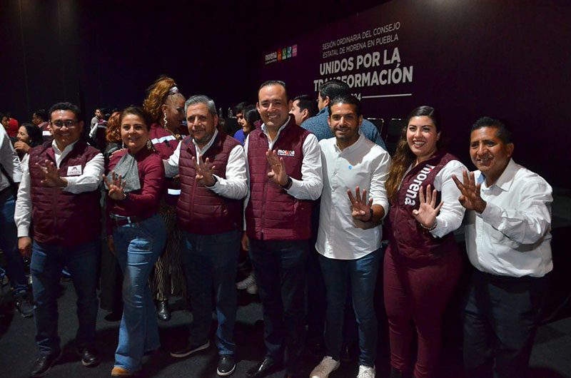 Junto con el Gobernador Sergio Salomón y la líder estatal Olga Romero, acuden a la sesión del Consejo Estatal de Morena