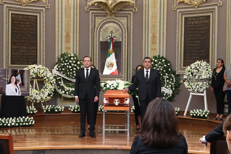 Diputadas y diputados, así como familiares dedicaron guardias de honor en memoria de la diputada Aurora Sierra, mientras que el gobernador de Puebla, Sergio Salomón Céspedes Peregrina y la presidenta del Tribunal Superior de Justicia, Margarita Gayosso Ponce participaron en la colocación del arreglo floral y en el minuto de silencio por la pérdida de la legisladora.