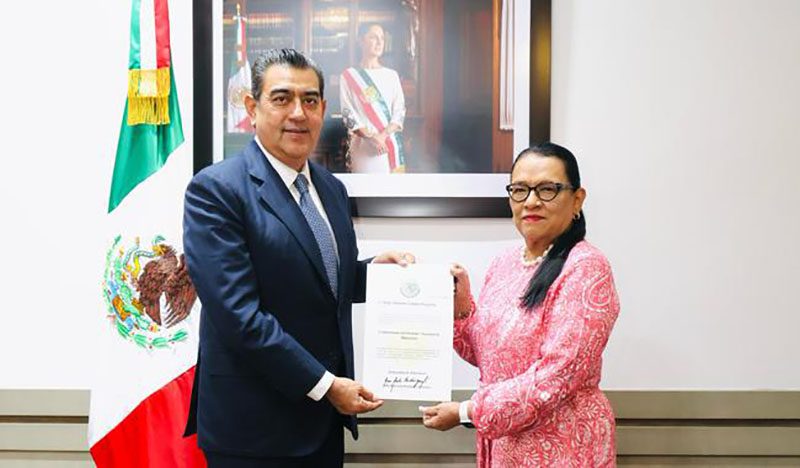 La secretaria de Gobernación, Rosa Icela Rodríguez entregó a Sergio Salomón Céspedes Peregrina su nombramiento como titular del INM