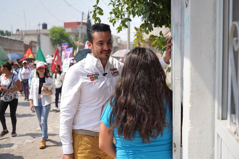 El candidato de la coalición «Sigamos Haciendo Historia» por el distrito 11 federal, Toño López, realizó un recorrido por calles de la colonia Guadalupe Hidalgo con su programa «Toca-Toca».