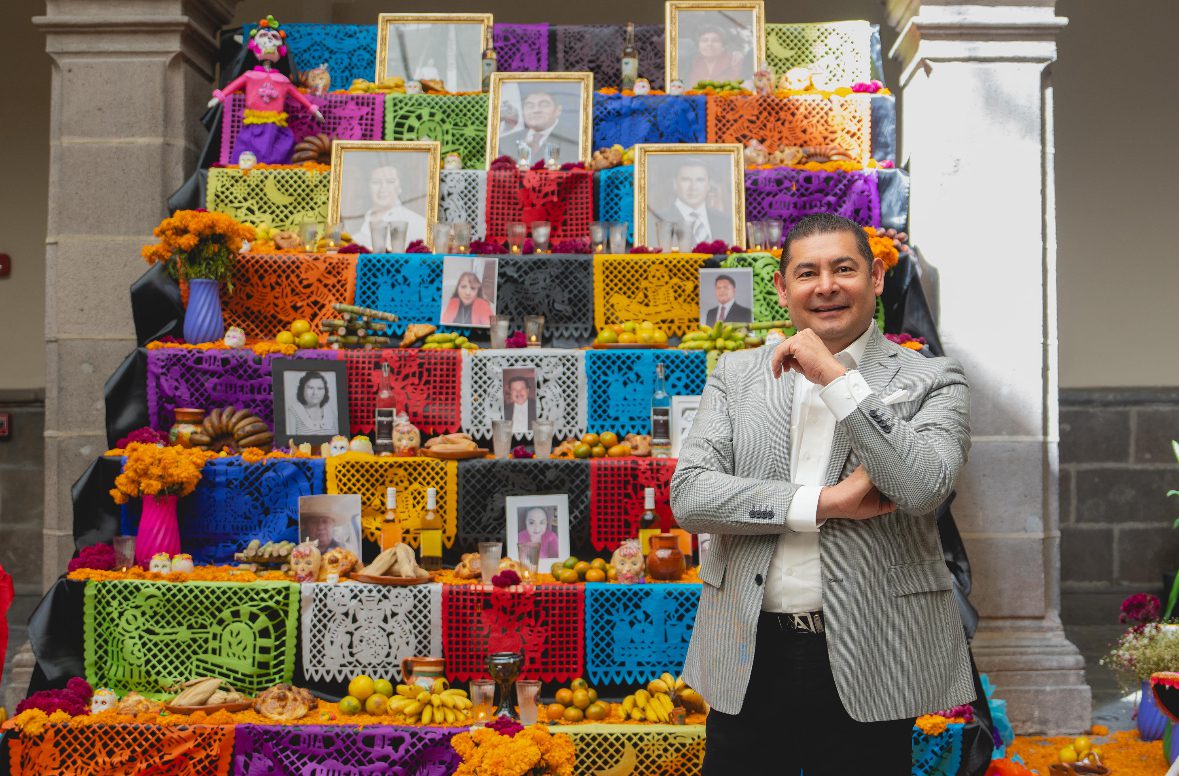 El Día de Muertos en Puebla de este año se ha conmemorado con un sentido homenaje en el ex palacio de gobierno, ahora sede del gobierno de transición, donde el gobernador electo Alejandro Armenta impulsó la instalación de una ofrenda. Esta se dedicó a familiares de trabajadores, así como a figuras importantes y ex gobernadores del estado, con un énfasis especial en recordar a activistas y defensores del agua que han dejado un legado significativo para la sociedad poblana.
